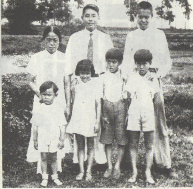 杨武之一家于昆明龙院村,后排右一为杨振宁。